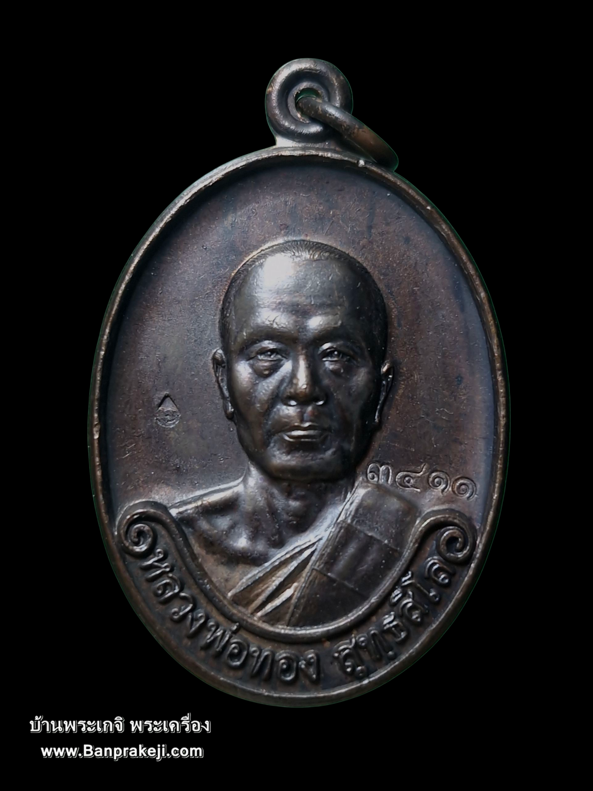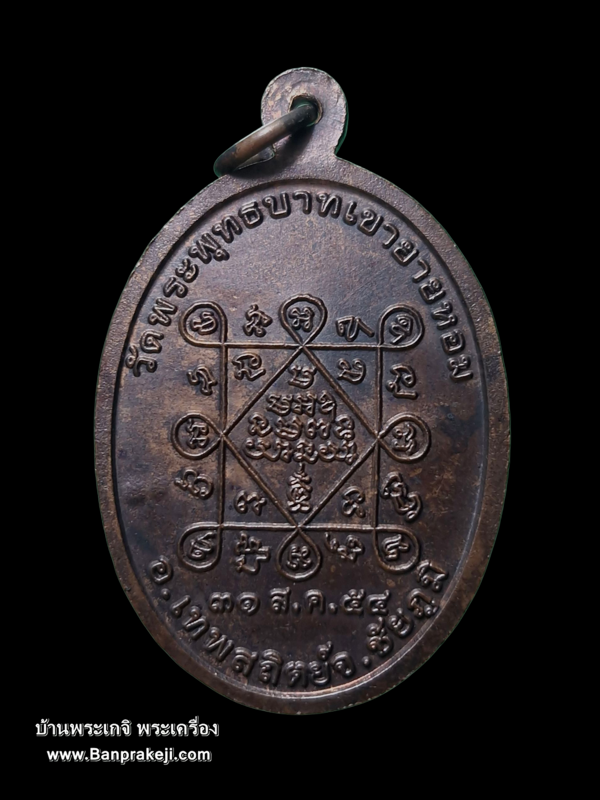 เหรียญรุ่นแรก หลวงพ่อทอง สุทธสีโล วัดพระพุทธบาทเขายายหอม จ.ชัยภูมิ ปี 2554 เนื้อทองแดงหลังยันต์แปด